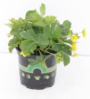 Guldjordbær leveres ofte i 0,5 liter potterPlant 8–10 planter pr. m² for at opnå et hurtigt lukket bunddække.