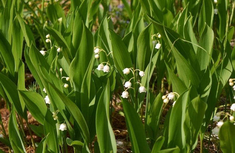 Liljekonvallen trives under halvskyggede og skyggede forhold, hvor den kan danne hele kolonier med sin lille vandrende rodstok.